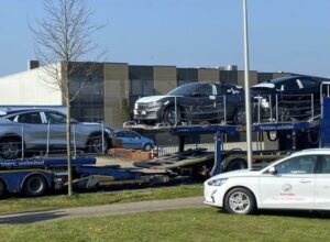 De route van de MS Immacolata hebben we natuurlijk gevolgd. Toen de auto’s eenmaal op de kade stonden, was er zelfs iemand die luchtfoto’s wist te bemachtigen. Kortom, iedereen leefde mee. De douane en het “klaren” van de auto duurde al met al best lang, maar op het forum zagen we een paar weken geleden de foto voorbijkomen met de eerste oplegger met MachE’s in Nederland. Whoohoo, nu was het echt aftellen.